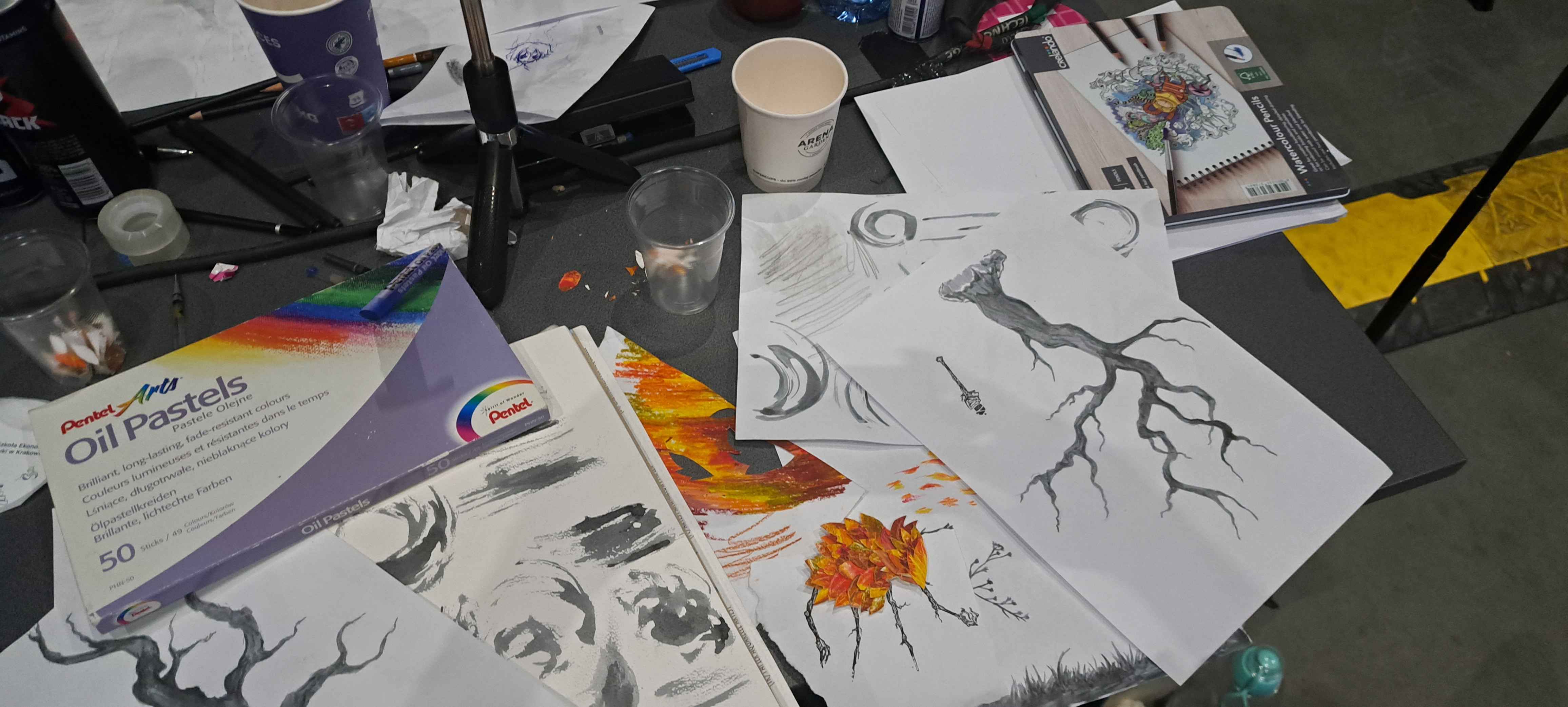 Zaczęliśmy więc kombinować, jak to rozgryźć. Inny, lżejszy silnik nie wchodził w grę — mieliśmy programistów stricte od Unreala. Gra papierowa również nie wchodziła w grę, nie po to tam pojechaliśmy. Zatem padło finalnie, dosyć żartobliwie, że zaczniemy tworzyć wycinanki papierowe, skanować je i w ten sposób stworzymy assety. W międzyczasie udało się również załatwić tylko 3 mocne laptopy i dwa o mniejszej mocy, głównie do obsługi Photoshopa i przeglądania internetu — na czymś trzeba było słuchać muzyki…