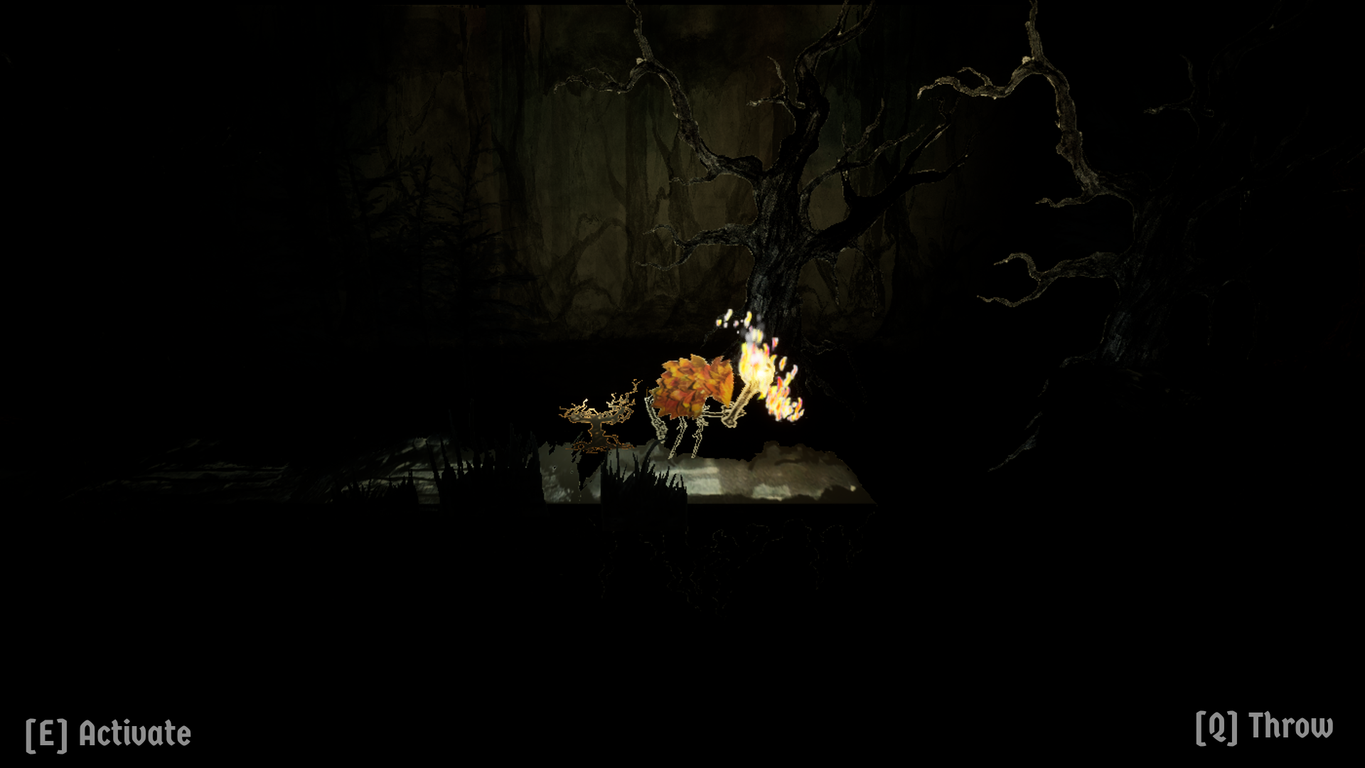 Sam Level Design platformówki nie był prosty. Inspiracją była gra Limbo, tylko że w naszym przypadku, z powodu ograniczeń czasowych, nie mogliśmy sobie pozwolić na dodanie zbyt wielu mechanik movementu czy reagowania z otoczeniem. Jedyną mechaniką, oprócz skakania i biegania, było rzucanie pochodnią. Poziom powstał tak, aby gracz, pomimo ograniczonej widoczności, kierował się w stronę światła — pochodni, która później otworzy mu przejście dalej. Chciałem również, aby to nie był zwykły Walking Simulator, ale żeby gracz poczuł pewien klimat i nie był rozpraszany ciągłym skakaniem po platformach. Jest to mało immersyjne. Dlatego plansza była prosta, intuicyjna i skonstruowana tak, aby nie była zbyt banalna, tylko wymagała lekkiej spostrzegawczości od gracza.